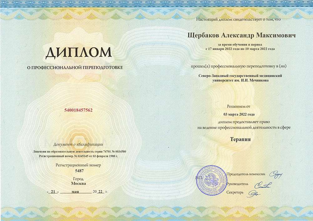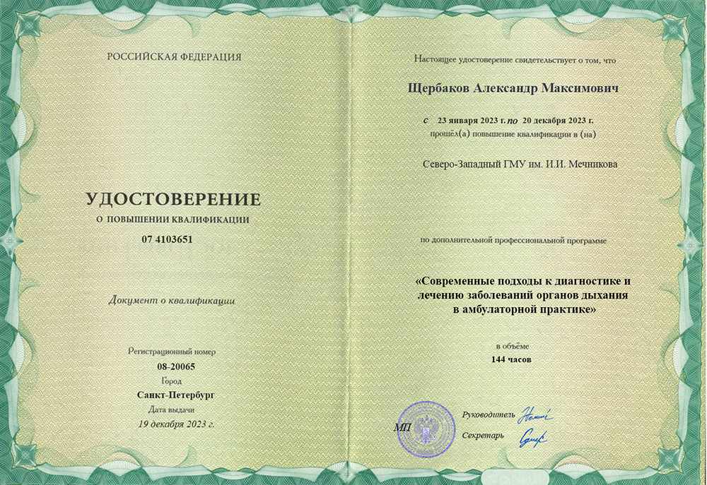 Врач - Щербаков Александр Максимович